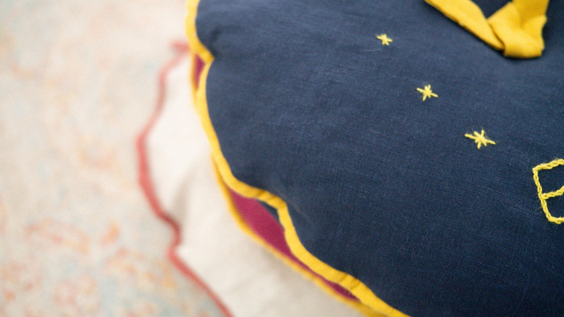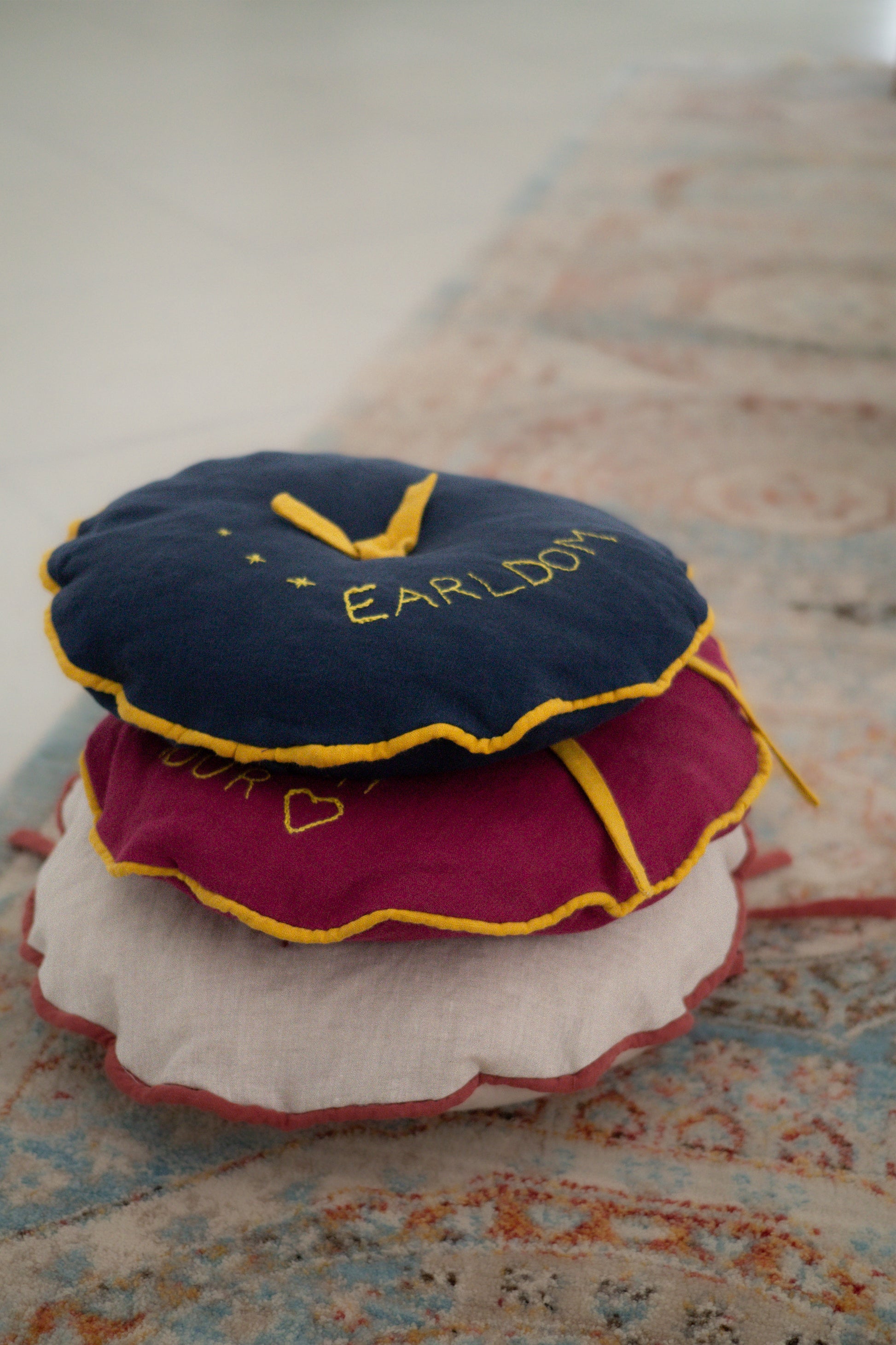 Meet the Luna pillow! A grounding and fun, colorful circular pillow that can be used as decoration, to be used, or on top of a round chair. The Luna pillow can be custom, and each are made to order, depending on your desire. With or without piping, coloring that can mix/match or contrast, with a custom embroidery element if desired.