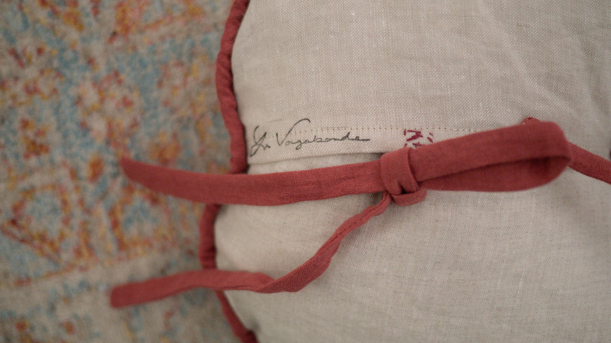 The pillow cover is made of 100% Ecological French Linen grown in France, with no chemical inputs. The cushions' inner piping is made of upcycled crochet cords. The inner cushion is made of upcycled linen fabric and stuffed with pure premium quality tree seed fiber that is moisture-resistant, chemical/petroleum free, and processed in the USA. The sewing thread is built to last, made from durable and responsibly harvested wood pulp that is recyclable and biodegradable.